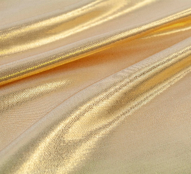 - 緯糸に均等に打ち込んだラメ糸のメタリックな光沢が特徴の織物です。
