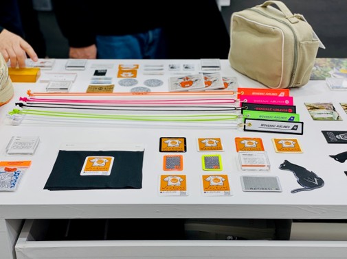 今回の新たな出展品の中で目玉は、織りネームで生産できるところは少ない生分解製品や、