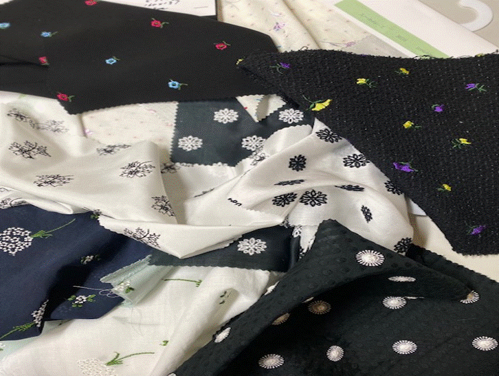 刺繍レース専門59年。来年60周年を迎える節目に、伝統と革新を紡ぐレース企画をお届けします。 1000柄以上の豊富なデザインと、素材・糸の組み合わせによる多彩な表現力で、ファッションの物語に寄り添うレースをご提案。天然素材(綿・綿麻・デニム・ピッケ・綿シルクなど)から合繊(オーガンジー・タフタ・シャンタン)、起毛(ベルベット・ベロア)、ニット、オーガニック素材まで幅広く対応。柄はオールオーバー、ボーダー、コード、モール、収縮、キルトなど多彩で、後染め・先染めも可能です。特殊刺繍糸(モール糸・ビーズ糸・蛍光糸など)を用いた企画も展開中。技術と感性を融合させたレースの魅力を、ぜひご覧ください。ス柄は色々です。 柄の置き換えは各素材にできます。 オールオーバーレース(全面柄)・ ボーダーレース・ コードレース・ モールレース・収縮レース・ キルトレース その他 特殊糸 刺繍糸 モール糸・ビーズ糸・蛍糸・等 1・天然素材 綿 インチ柄(2.7cm)から6インチ柄(16.2cm) 後染め 先染 綿麻生地 デニム ピッケ 綿シルク 等 ジ タフタ シャンタン 等 3・起毛素材 ベルベット・ ベロア 4・ニット素材 5・オーガーニック